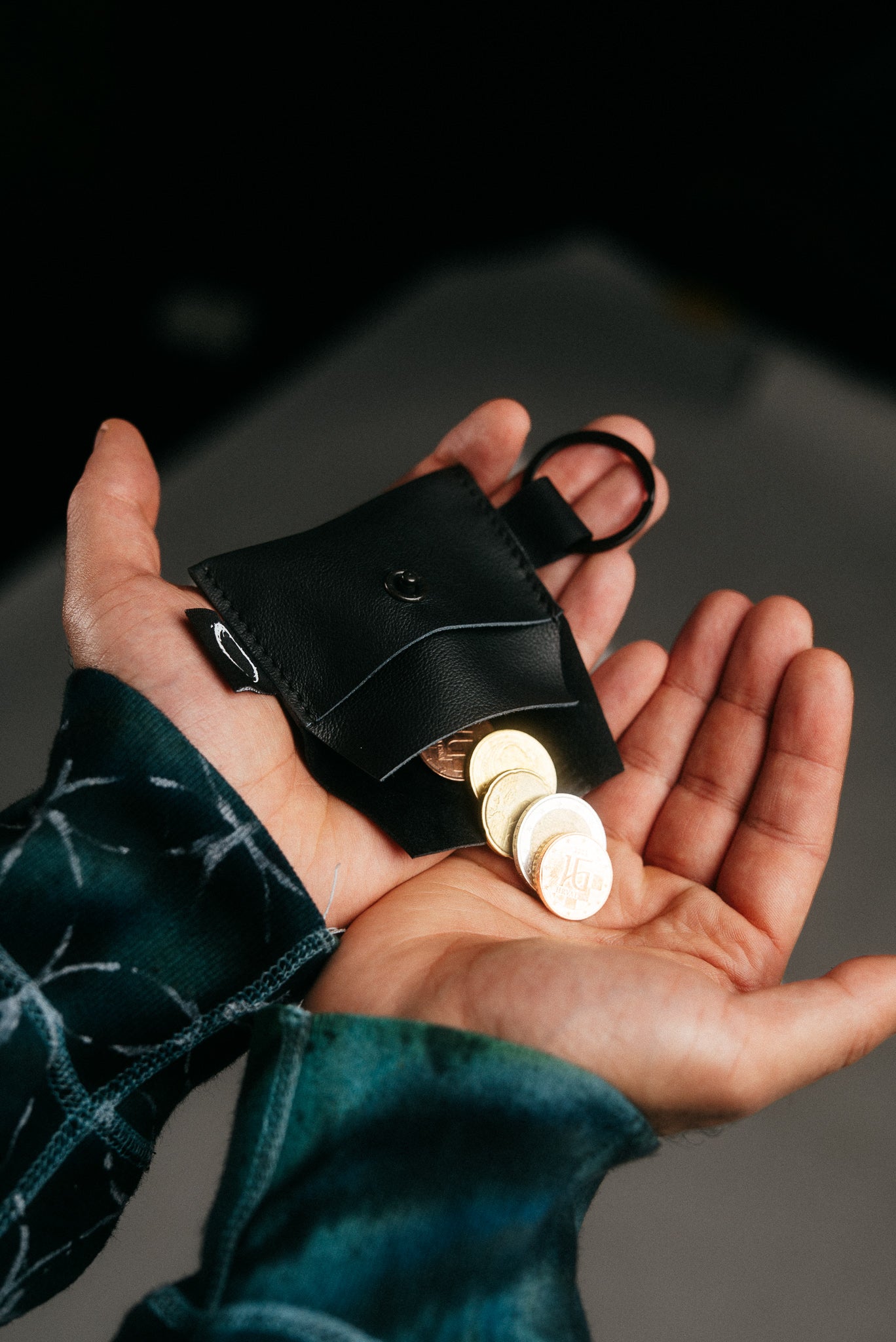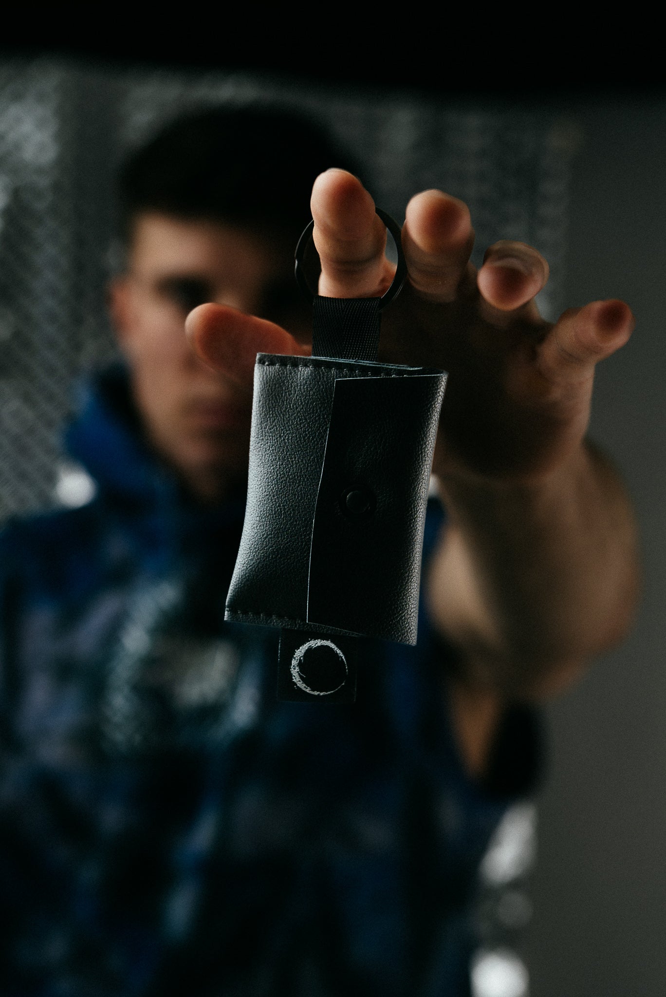 Designed as a compact wallet for coins and essentials, it features a discreet black key ring that mirrors the strength and geometry of the ring-shaped snap fastener. A subtle YH logo is sewn in as a final mark — understated, intentional, complete.