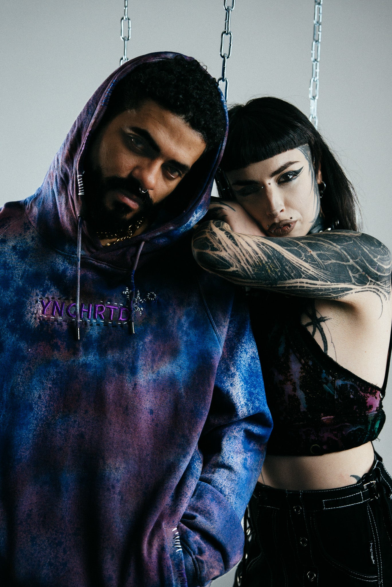 A statement piece born from the fluid interplay of color, chaos, and craft. The “BeetleJuice” Hoodie has been hand-dyed with layered spray mixtures that merge blue, purple, black, and white into a striking, unpredictable pattern.