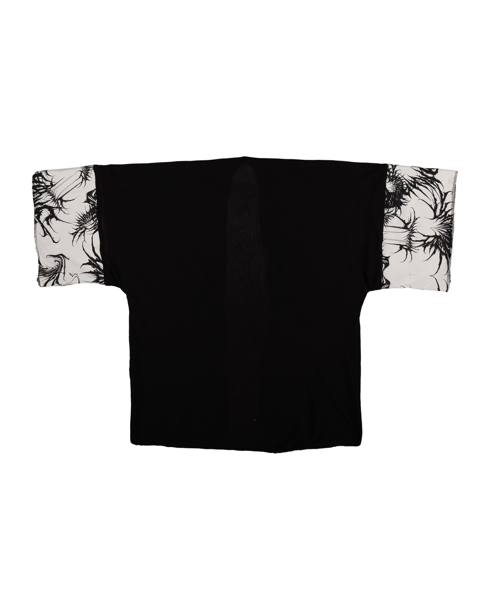 A bold, upcycled statement piece, this black kimono features a striking white Liquid Death graphic on the front and two functional pockets. Handmade and finished with laces, it showcases Younghearted’s signature approach to sustainable, expressive design.