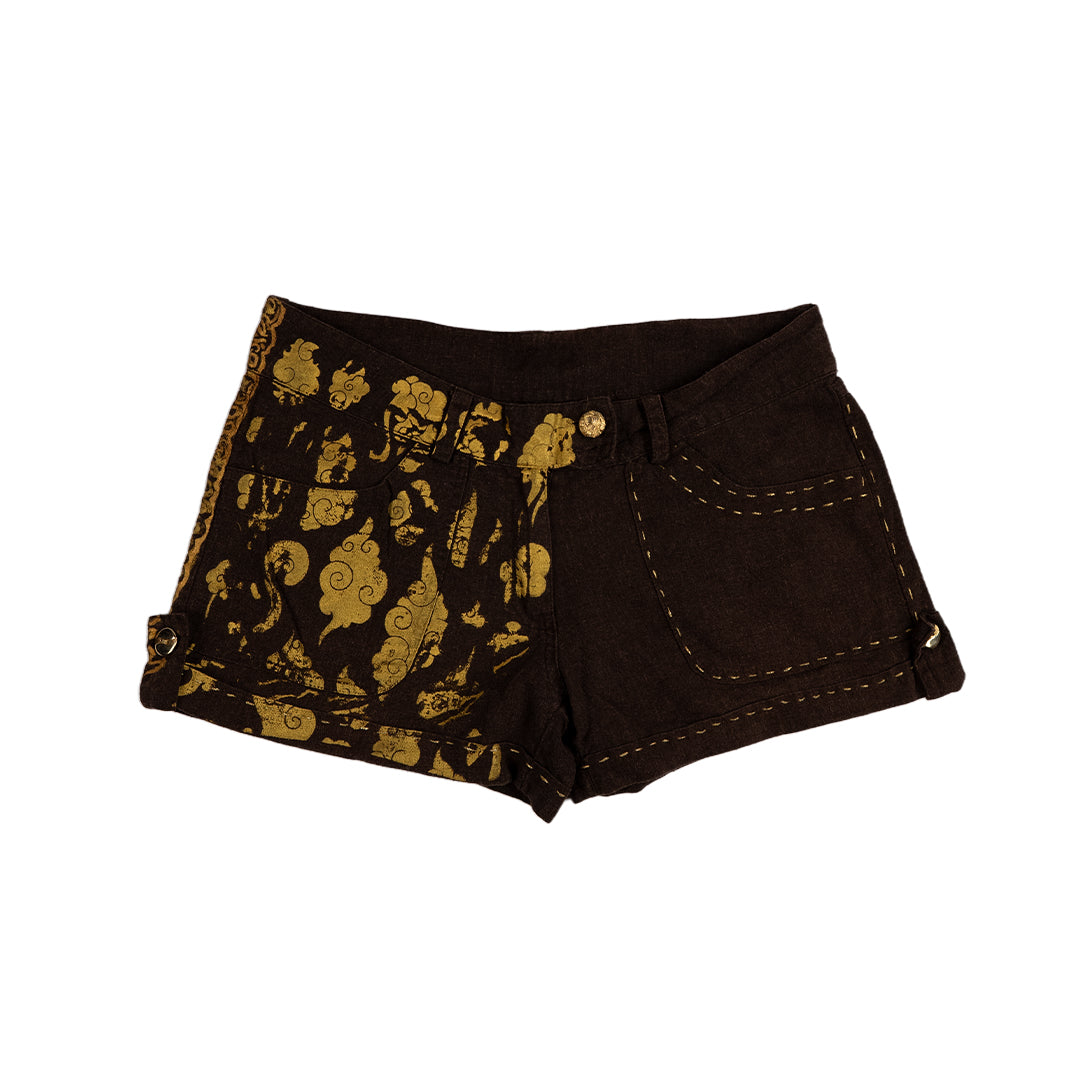 Golden clouds drift, flames rise. A meeting of calm and fire, softness and force. These shorts carry a quiet ritual energy — grounded, protective, alive.
